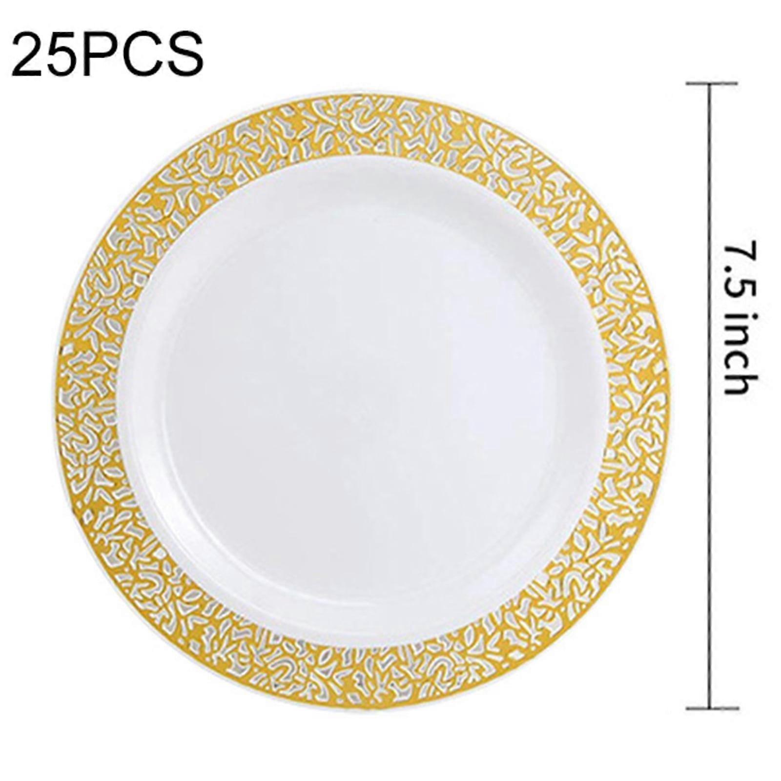 25pcs Clear & Gold Trim Disposable Plastic Plates, Heavy Duty 10.25" Dessert Dinner Plates, Holiday Party Supplies