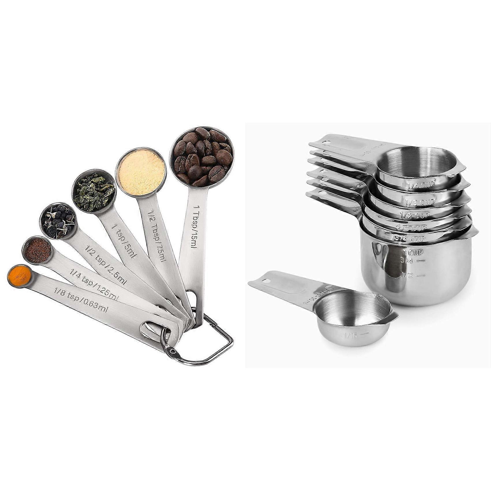Measuring Cups Set of 7 with 1/8 Cup Coffee Scoop & 6x Measuring Spoons, Stainless Steel Measuring Spoons Cups Set,