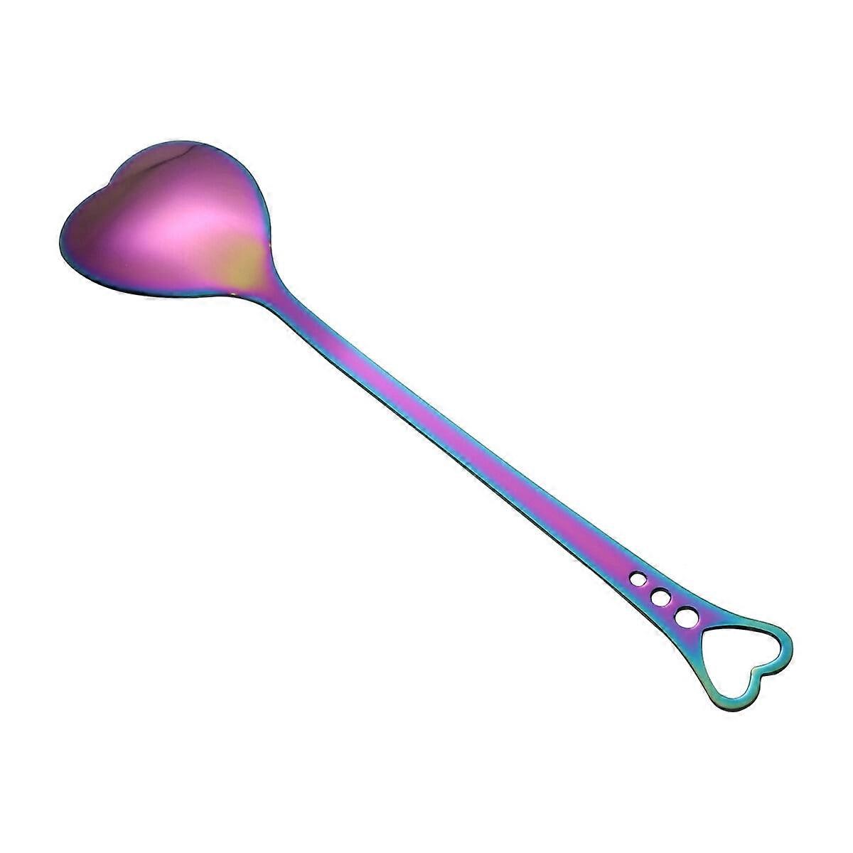 1Pc Stainless Steel Heart Spoon Dessert Spoons for Home Kitchen Coffee Sugar Tea Cake Stirring Mixing Appetizers Silverware ( Colorful )