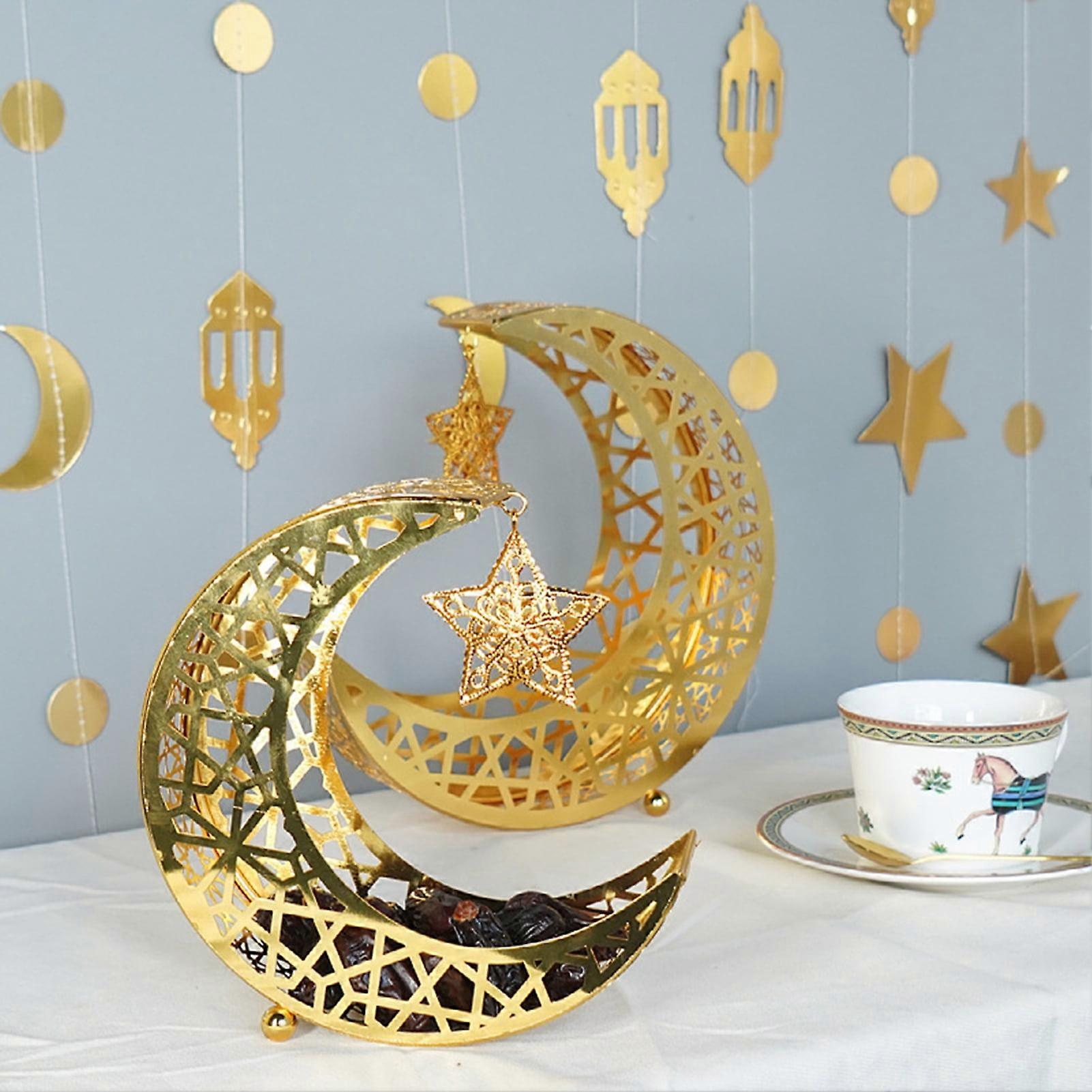 SUSUchens Moon Star Snack Tray Hollow Out Metal Dessert Plate Food Storage Container Eid Mubarak Islamic Ramadan Decor Golden Size S