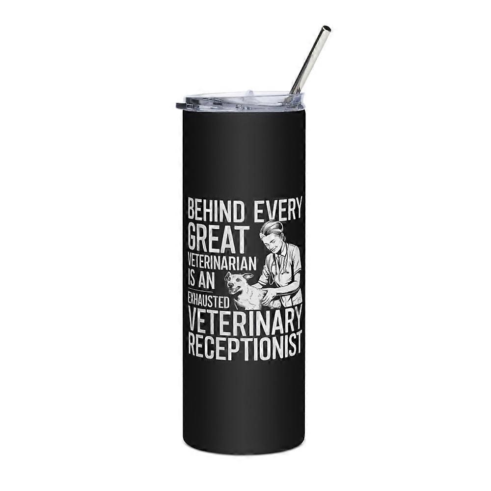 Vet Receptionist Skinny Slim Tumbler, Behind Every Great Veterinarian Is an Exhausted Veterinary Receptionist