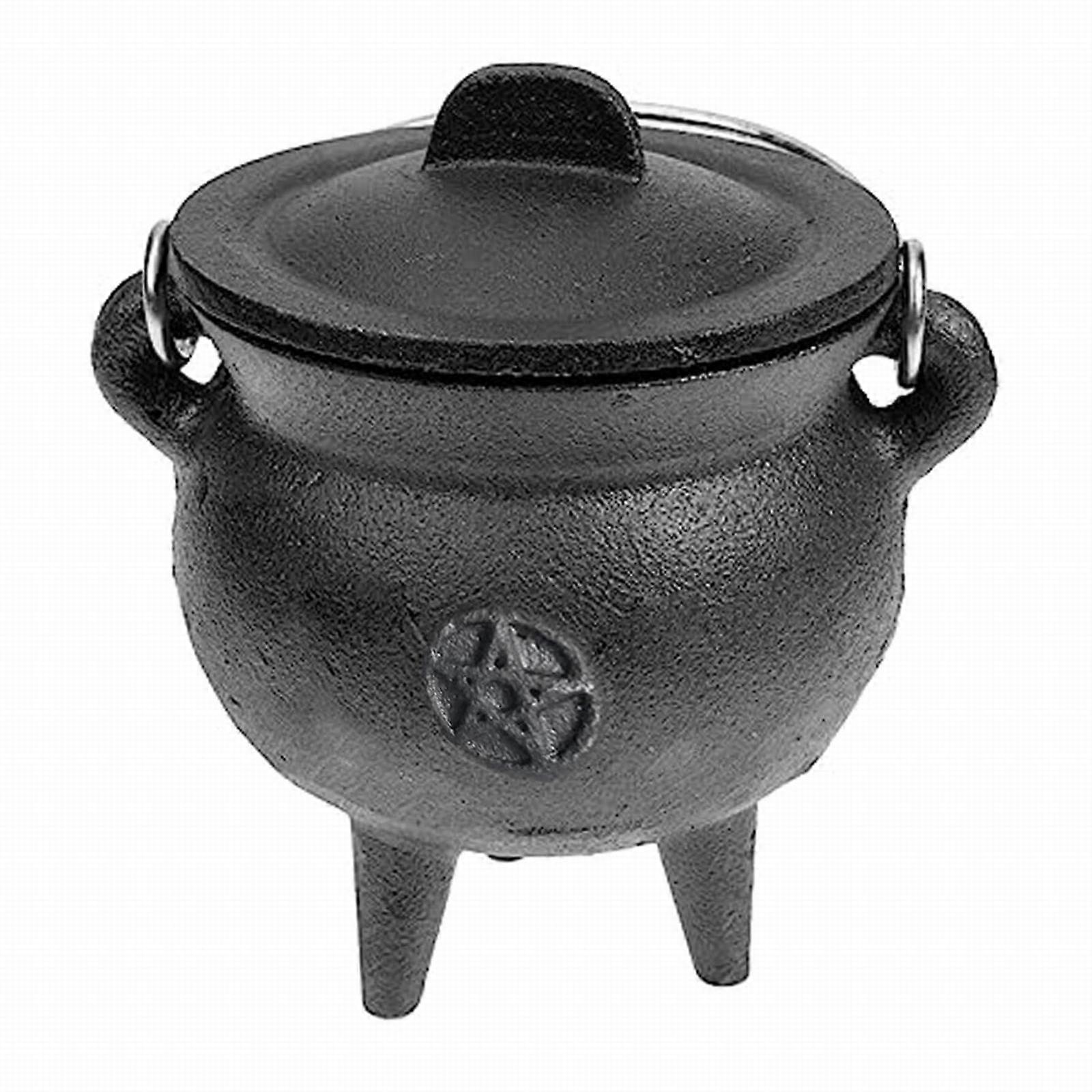 Halloween Cauldron Candle Holder 3.94" with Lid & Handle - Compatible with Incense, Witch & Moon Decor