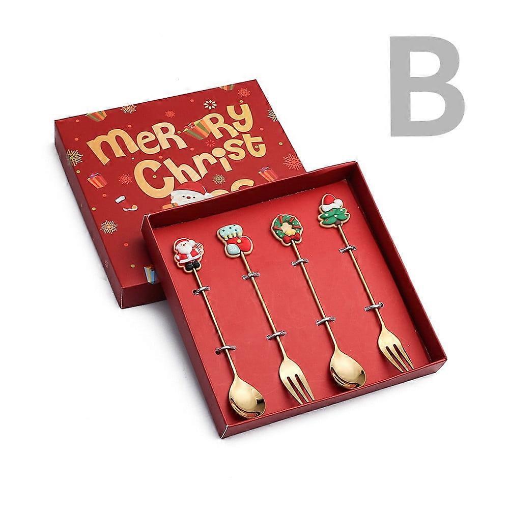 AURIGATE 4Pcs Christmas Dessert Fork & Spoon Set, Stainless Steel Creative Tableware with Pendant for Party Decor