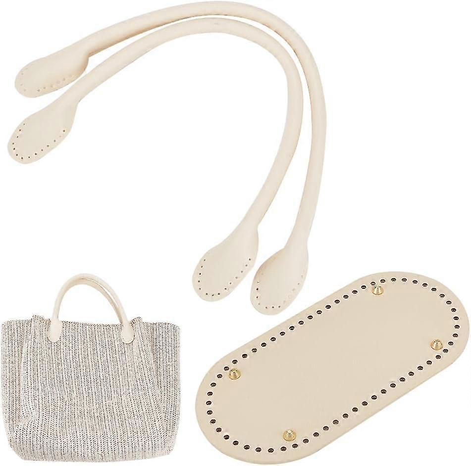 2pcs PU Leather Purse Straps with 1pc Crochet Bag Bottom 16.1" Imitation Leather Sewing Handbag Handles with Holes 9.8x4.9" Yellow DIY