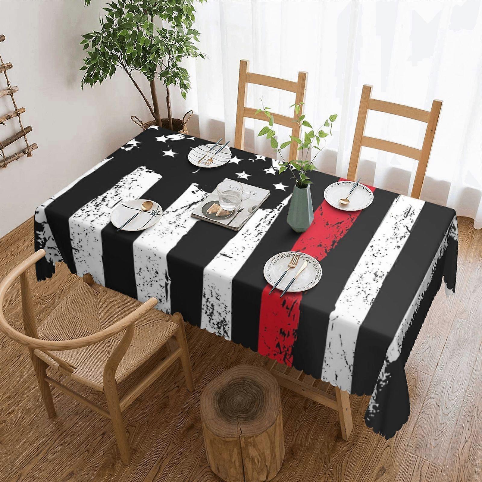 Firefighter Distressed American Flag Firefighter Tablecloth, Water Resistance Spillproof Table Cloth For Thanksgiving/Christmas Family Tablecloth