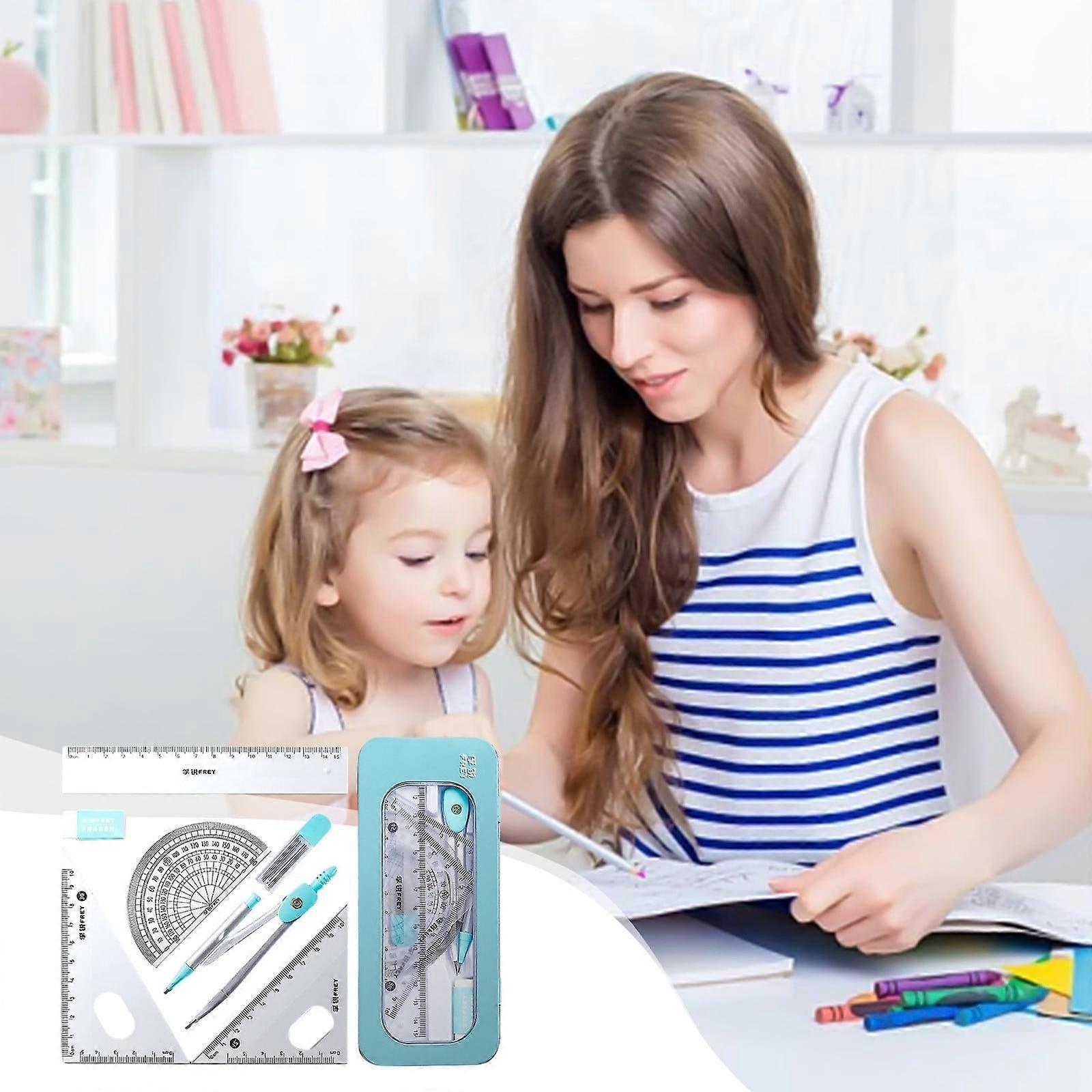 Kayannuo 7-Piece Math Geometry Kit with Shatterproof Box, Ruler, Protractor, Pencils, Eraser, Leads – Easter Gift, Student Supplies