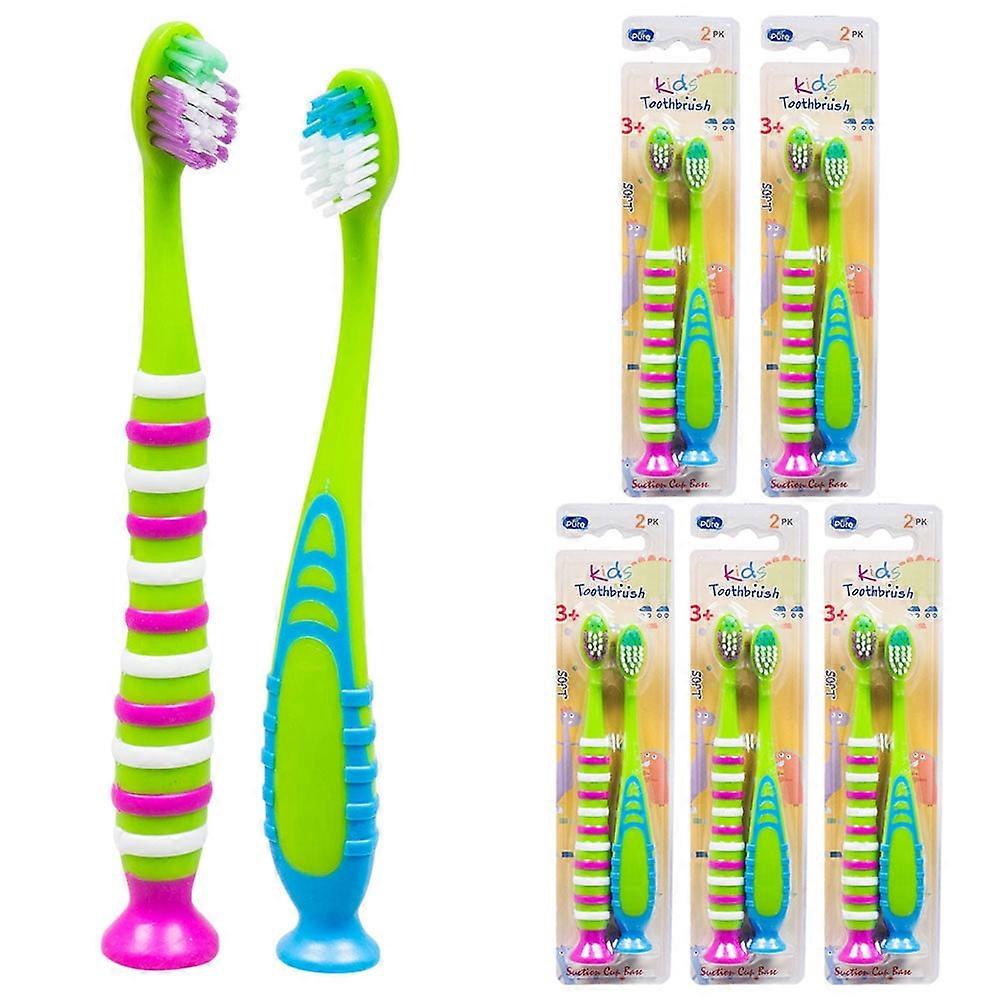 10 Pack Kids Toothbrush Extra Soft Bristles Suction Cup Holder Clean Oral Care