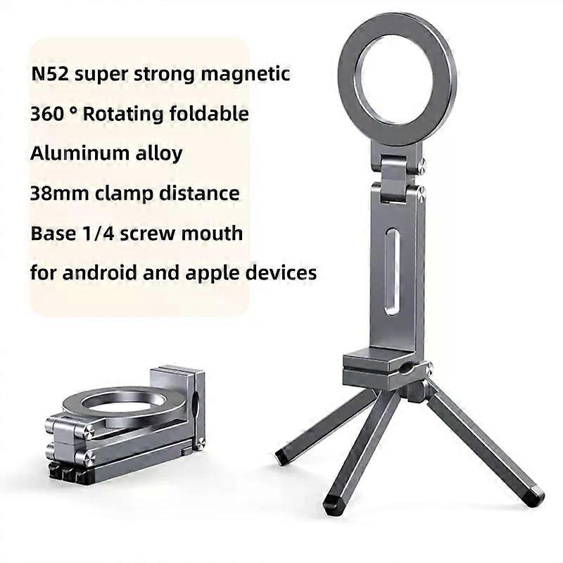 Foldable Travel/Airplane Phone Tripod Stand - 360�� Magnetic Rotating Holder for IPhone & Android, Portable Desk/Car Mount