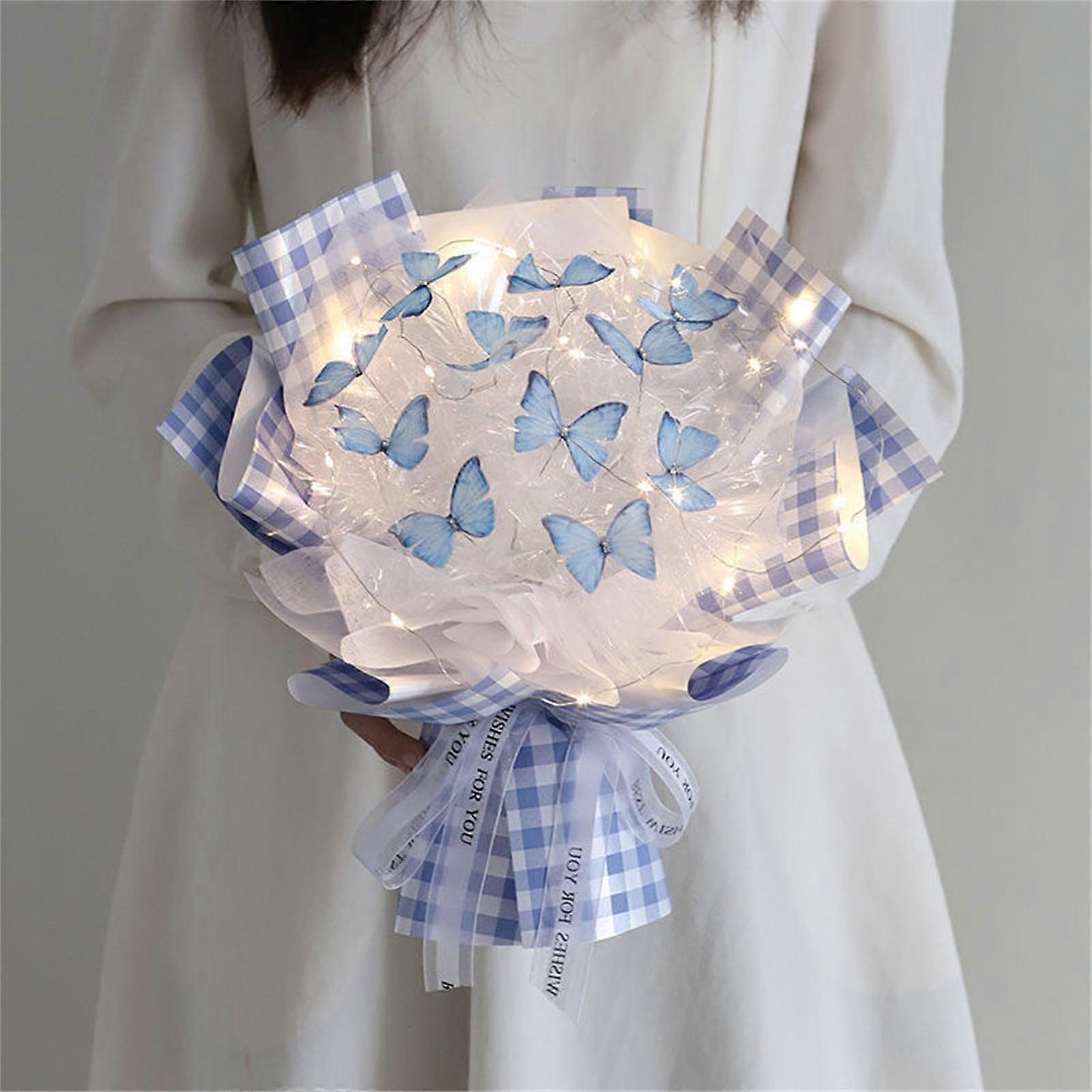 Kayannuo 11pc Butterflies Flower Bouquet with LED Light, Garden Decor Gift Set, Compatible with Valentine's Day, Birthday, Anniversary
