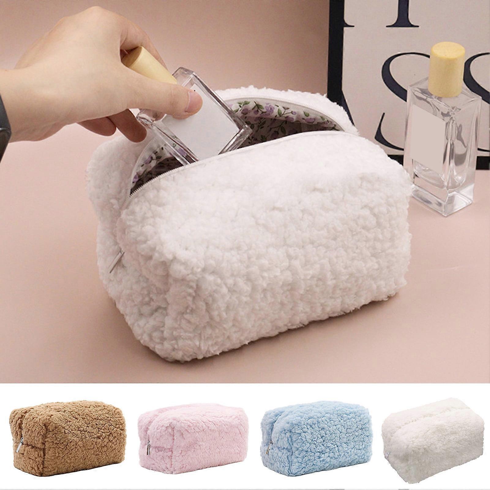 SUSUchens Wool Cosmetic Storage Bag Lightweight Waterproof Metal Zippers Storage Pouch for Brushes Creams Lipsticks Sky Blue