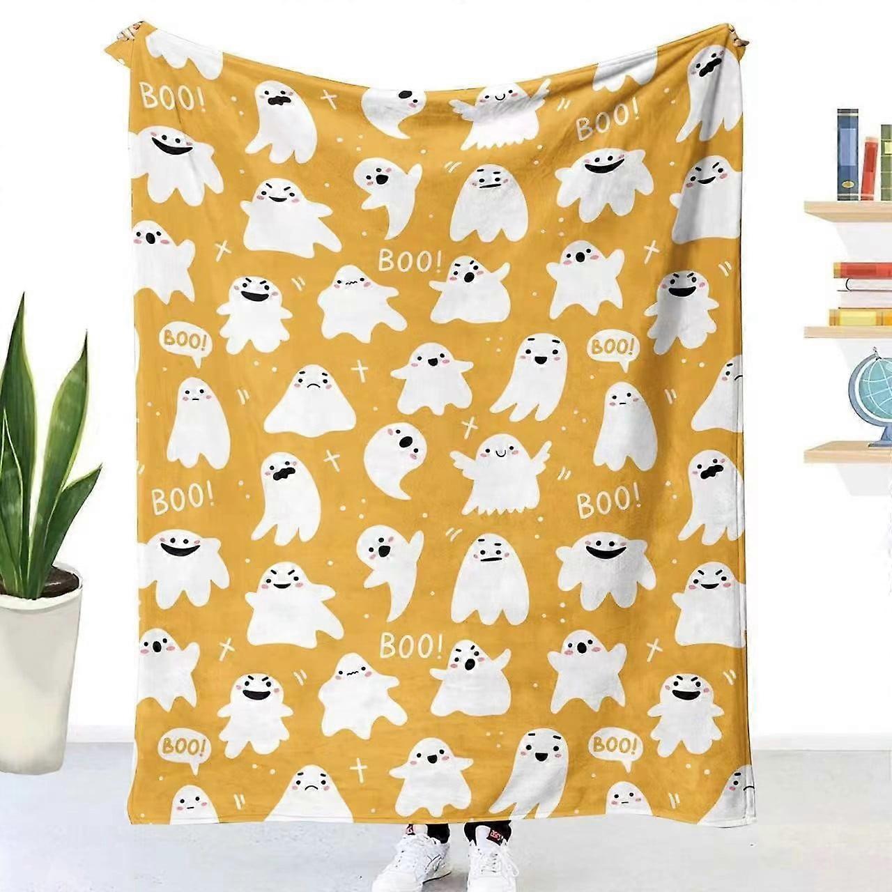 Halloween Ghost Blankets Funny Lightweight Cozy Blanket Soft Seasonal Travel Blanket for Couch Bedding Living Room Decor 30*40 A-1