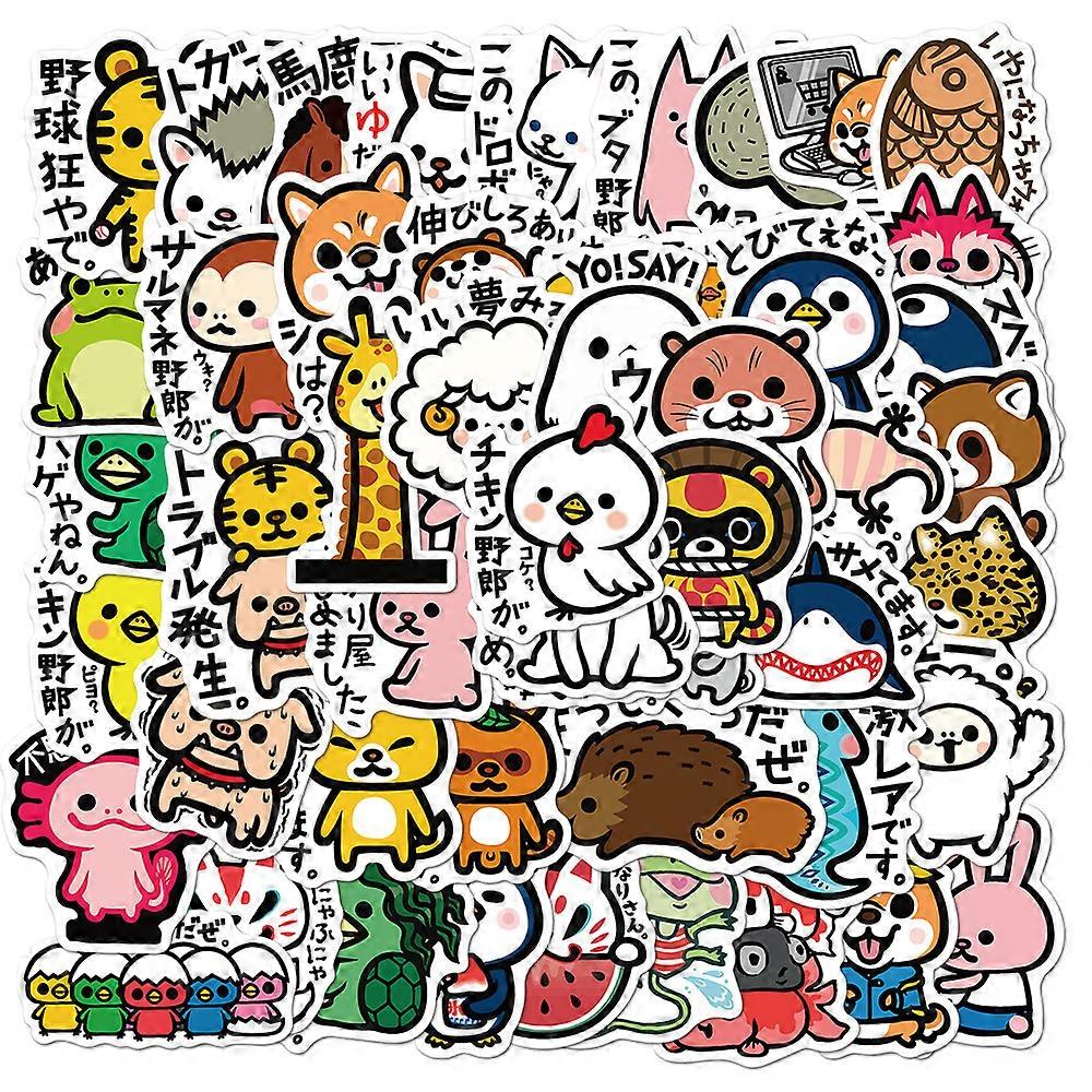 50 Mori-style, Japanese and Korean-inspired cartoon animal graffiti stickers for suitcases and laptops; waterproof and non-adhesive.