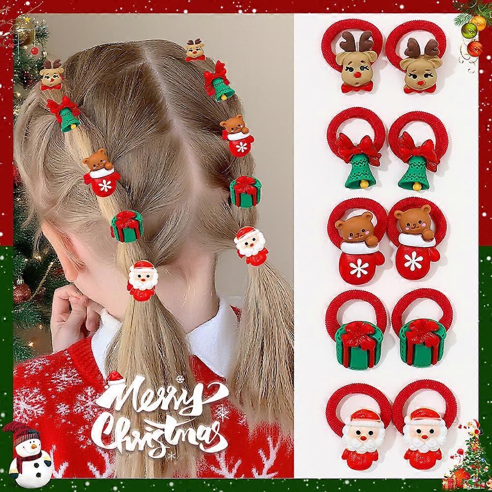 10-Pack Girls Hair Ties Cute Christmas Design with Santa Reindeer Tree Snowman - Hair Accessories Gifts for Girls for New Year