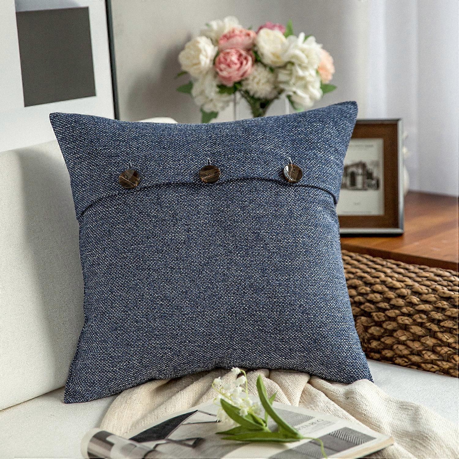 Phantoscope Farmhouse Series Cotton Blend Decorative Throw Pillow with Triple Button, 22" x 22", Navy Blue, 1 Pack