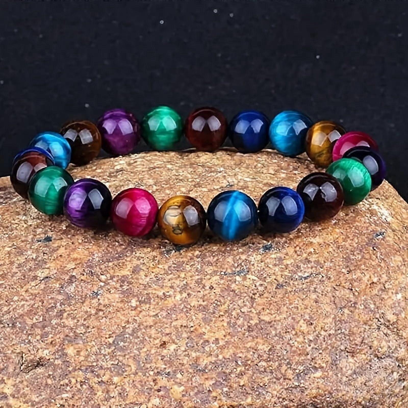 Men's 8mm Natural Tiger Eye Stone Bracelet - Colorful Beaded Yoga Accessory, Perfect Father's Day Gift