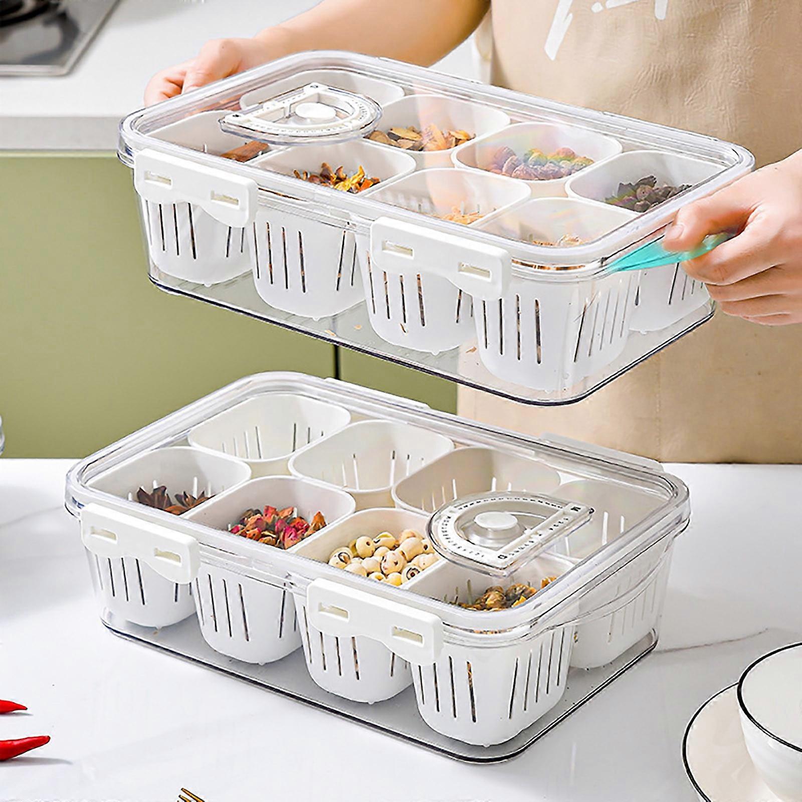 Quinlira Scallion Fresh-Keeping Box, Large Refrigerator Storage with Lid, Compatible with Kitchen Partition, For Ginger, Garlic, Gifts for Women &