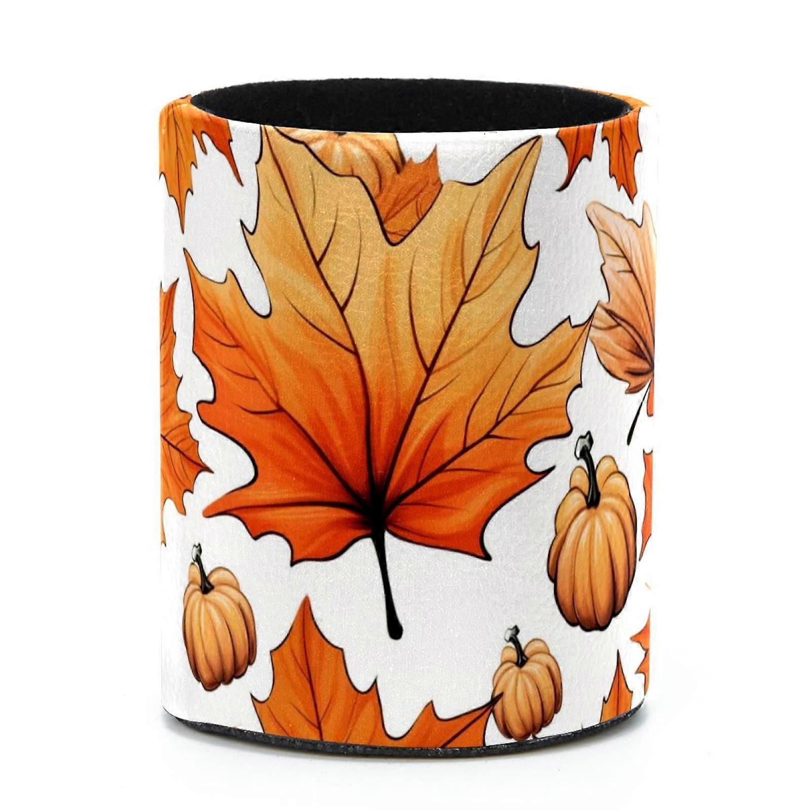 Enhance Productivity with this Cylindrical Pen Holder and Desktop Organizer for Makeup and Art Supplies, Maple Leaves Pumpkin
