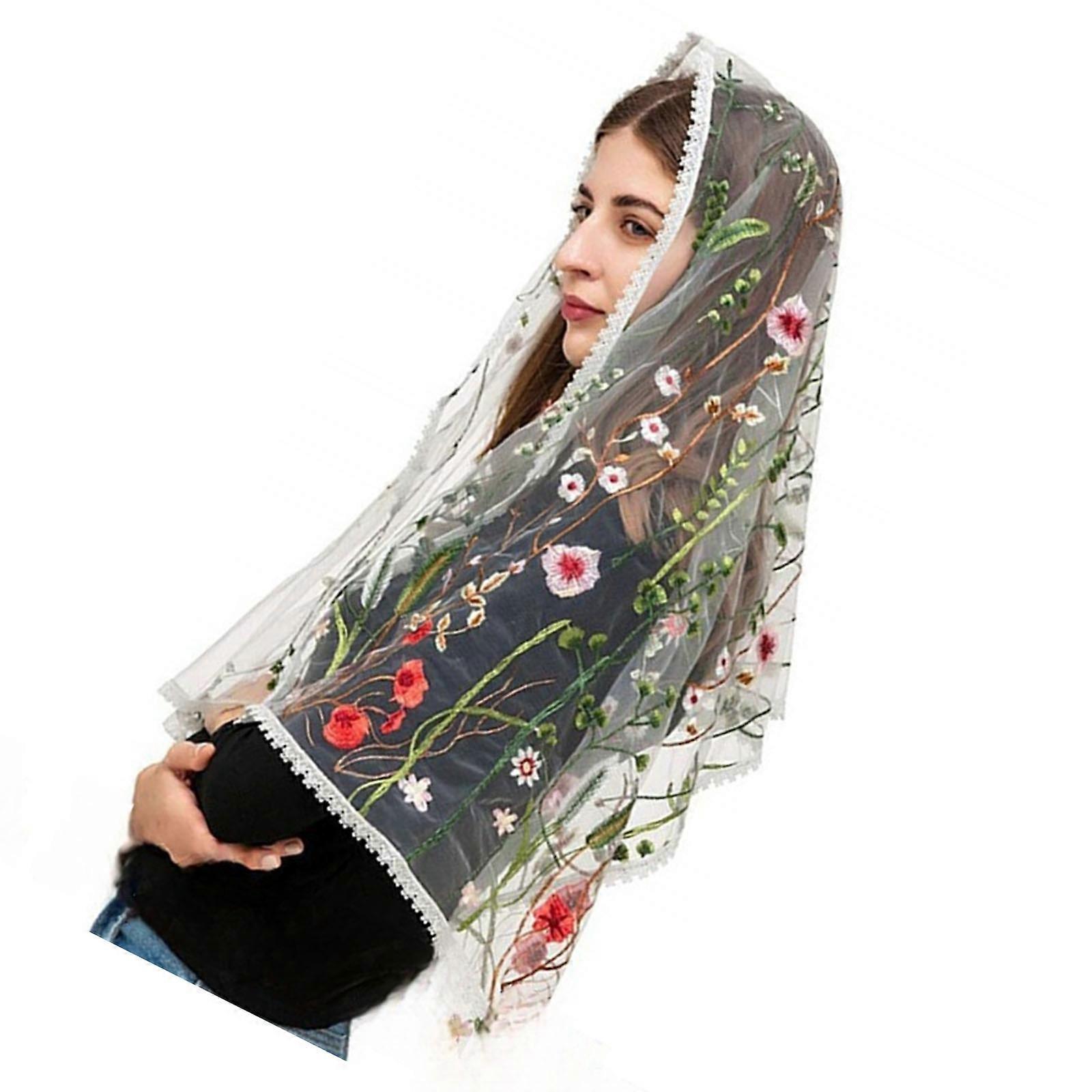 Vintage Bridal Scarf Flower Pattern Shawl Breathable Rectangle Wedding Veil for Bride Bridesmaids Ivory