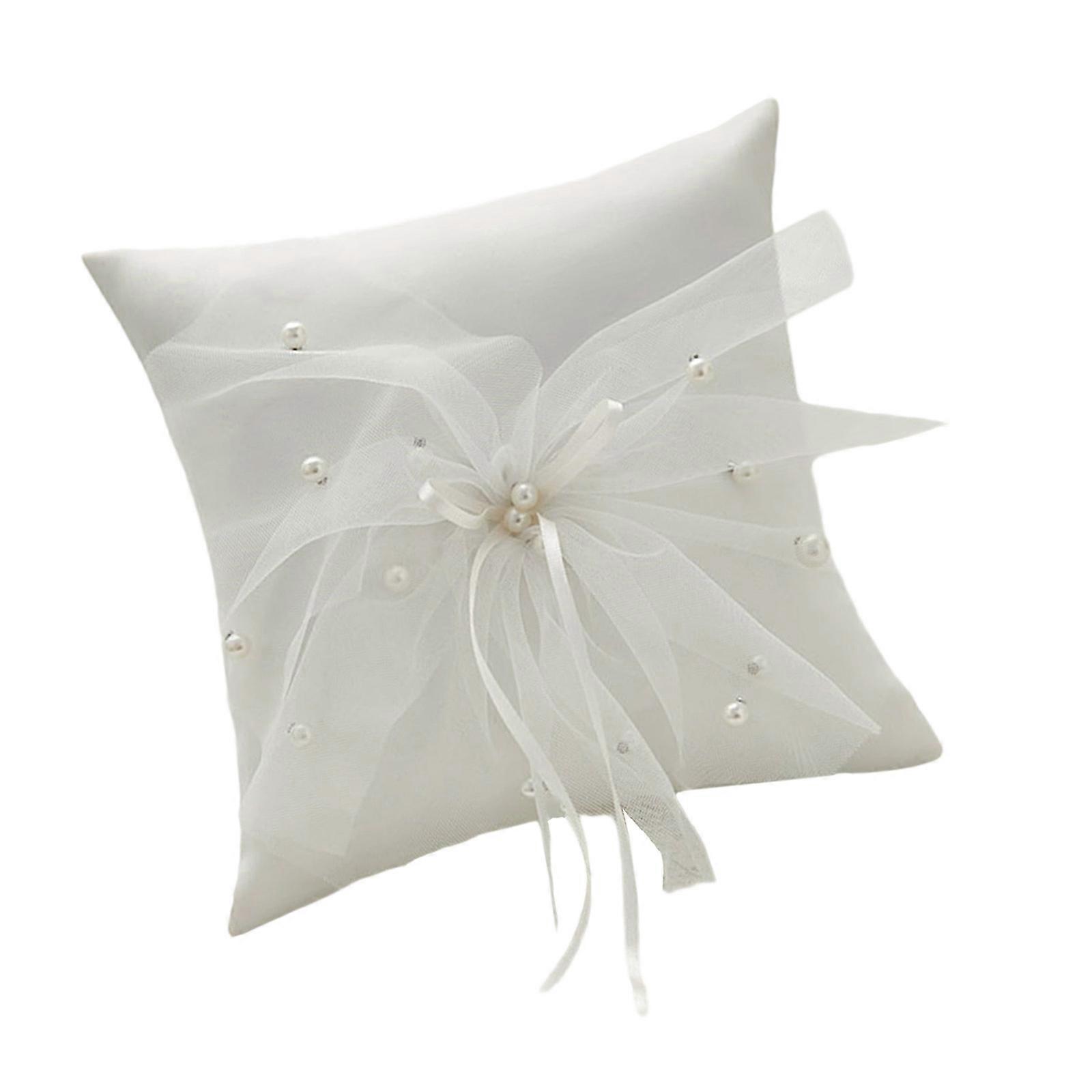 Handmade Beads Tulle Rings Pillow for Weddings With Lace Appliques and Bowknot Decoration Polyester Rings Holder Multicolor