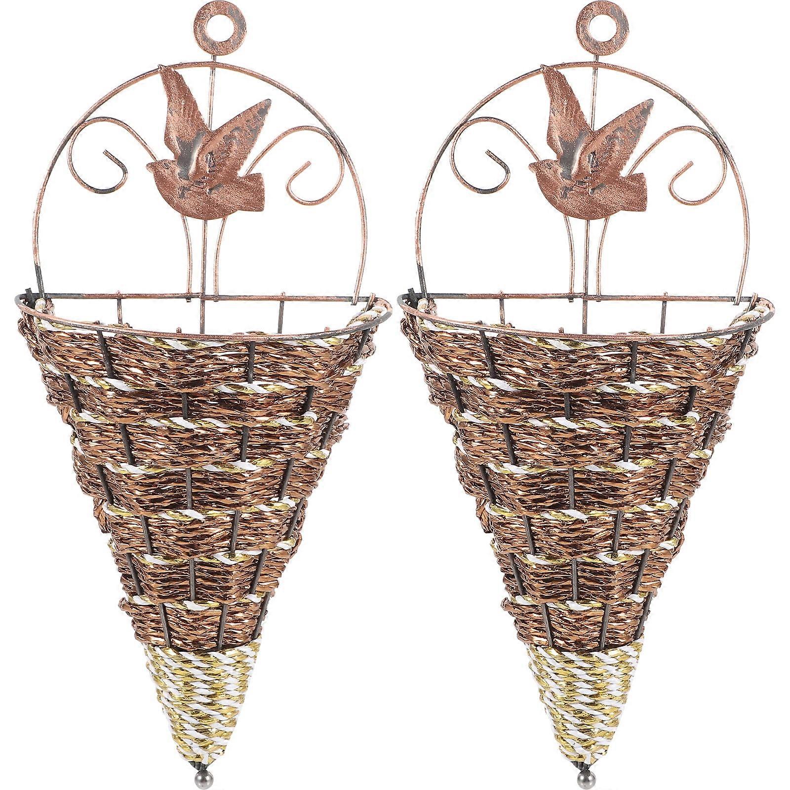Metal Hangers Rattan Vase Flower Pots Wall Hanging Baskets (2pcs)