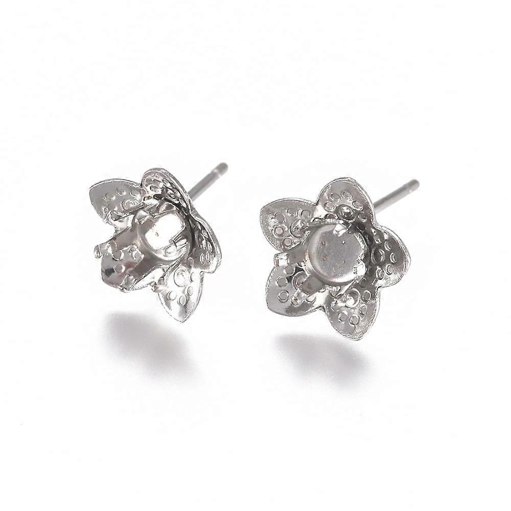 4pc 304 Stainless Steel Stud Earring Findings Earring Settings Flower Stainless Steel Color Tray: 4mm 10.5mm Pin: 0.8mm