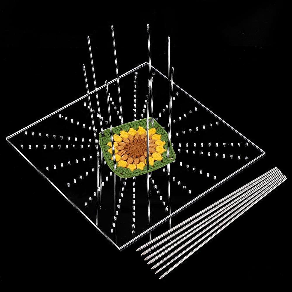 1Set Crochet Blocking Board 11.8x11.8in Clear Acrylic with Stainless Steel Pins, compatible with Granny Squares, for Cushions, Scarves, Hats,