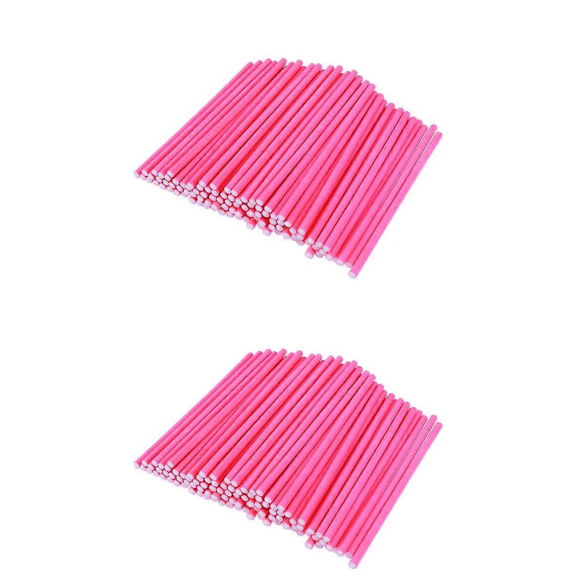200 pcs Paper Lollipop Sticks Cake Sticks for Birthday Party DIY Craft Project (Rosy)