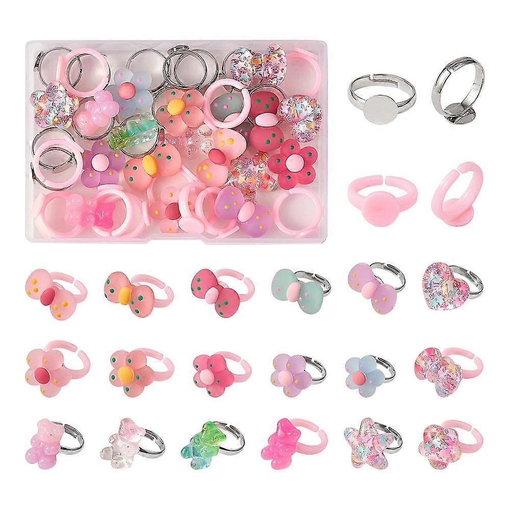 DIY Candy Finger Ring Kit with Flower, Bowknot, Heart, Starfish Resin Cabochons & Acrylic/Brass Bases, 42Pcs - Compatible with resin crafts