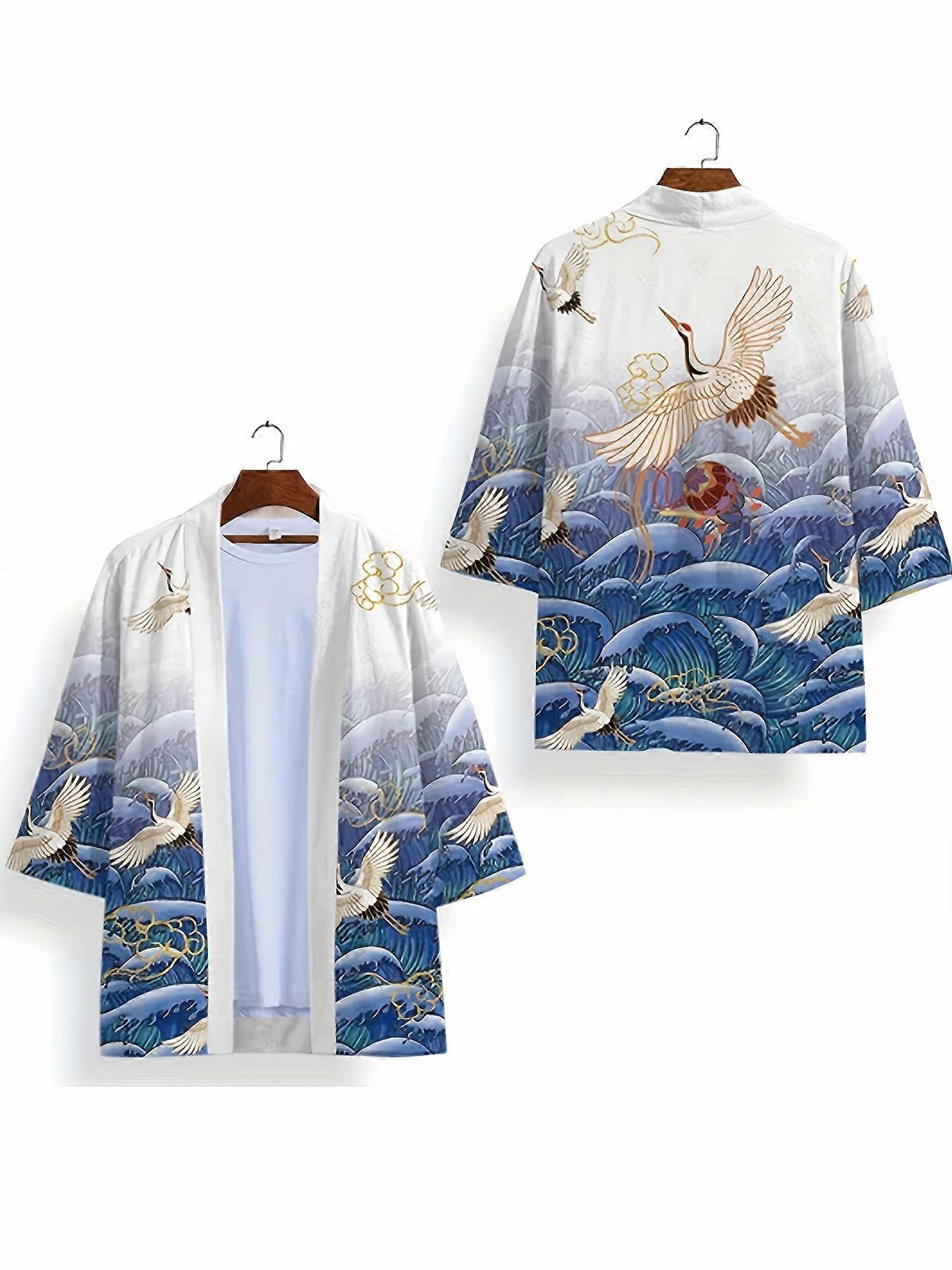 Animal Bird Patterns Crane Waves Asian Traditional Costume Print Kimono Men Women Yukata Haori Harajuku Cosplay Cardigan Costume