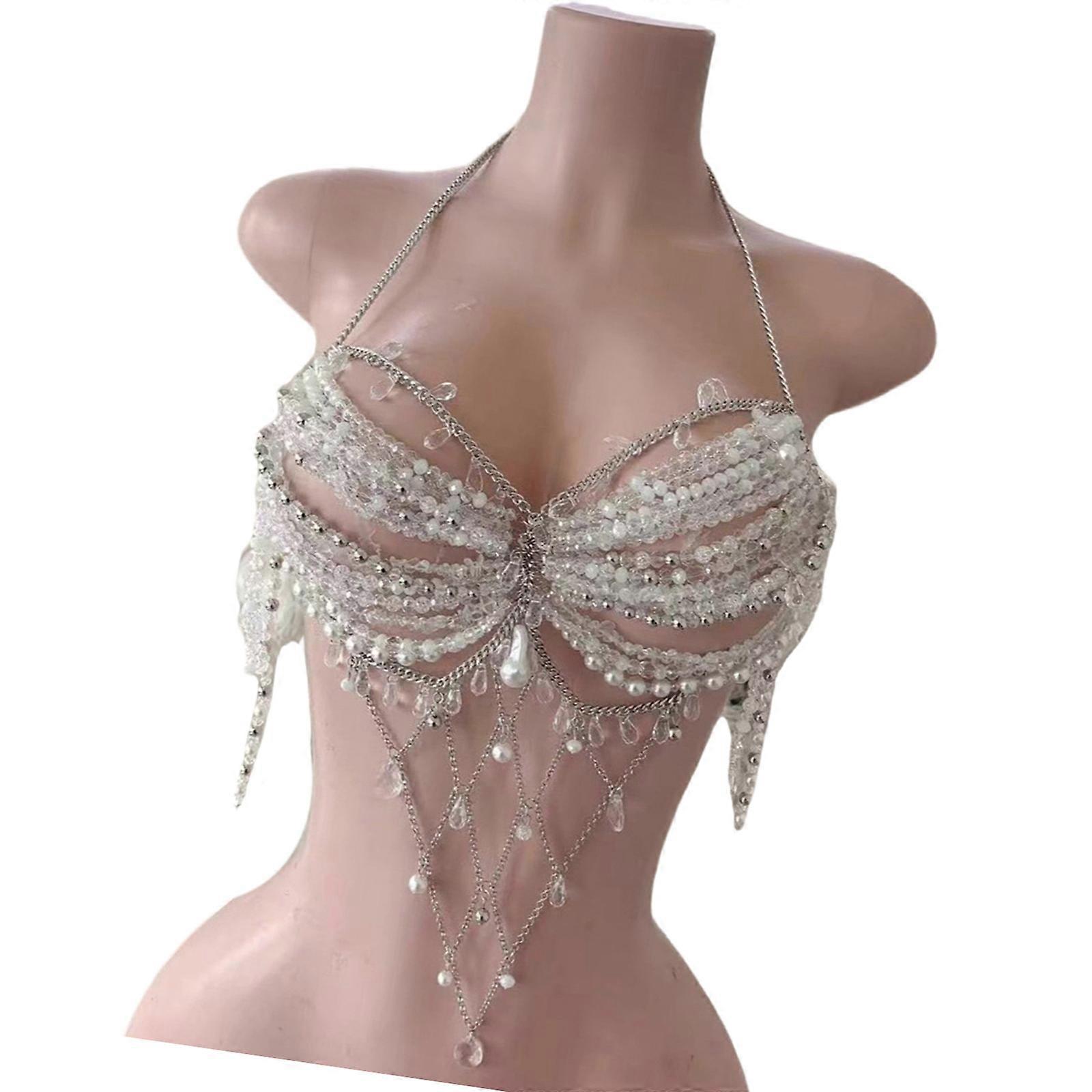Beaded Body Chain Bra Bikini Chain Chest Chain Fashion Body Chain Jewelry Accessories Adjustable for Raves Party Beach Transparent color os
