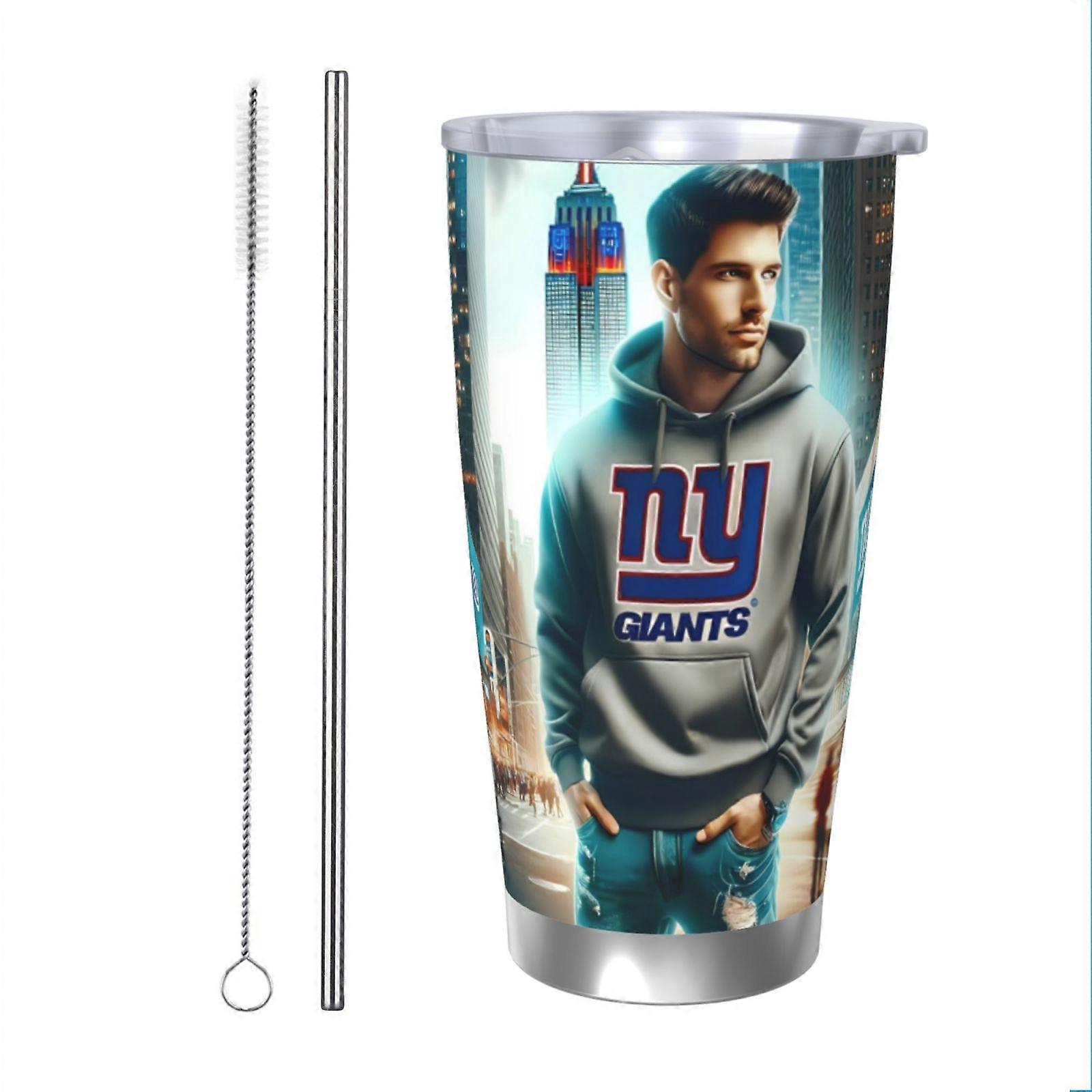 20oz Stainless Steel Thermos Cup Compatible with Giants Football Team Theme - Hot & Cold Drinks, with Lid & Straw, Car & Sports Use, Holiday Gift