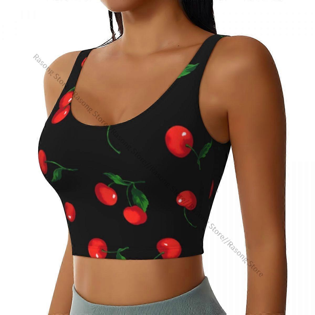 Yoga Vest Women Gym Sports Crop Tops Cute Cherry Pattern Streetwear Workout Breathable Tank Top Female
