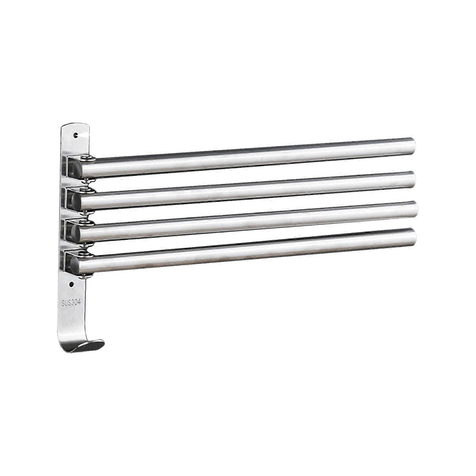 CACAGOO Swivel Out Towel Rack 4-Bar Foldable Arms Wall Mount Holder with Hooks, Stainless Steel Bathroom Kitchen Organizer