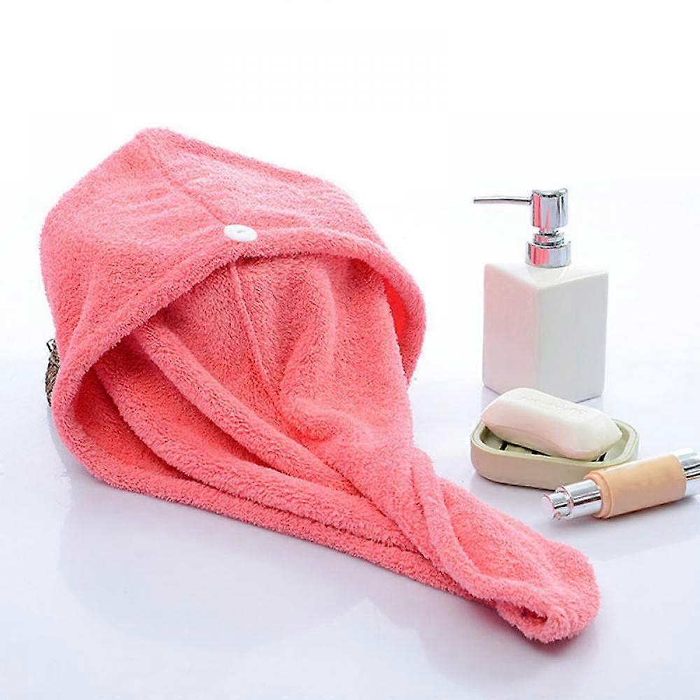 Coral Fleece Hair Towel Wrap for Women, compatible with Turban Drying Bath Shower Cap with Buttons, Rose Red