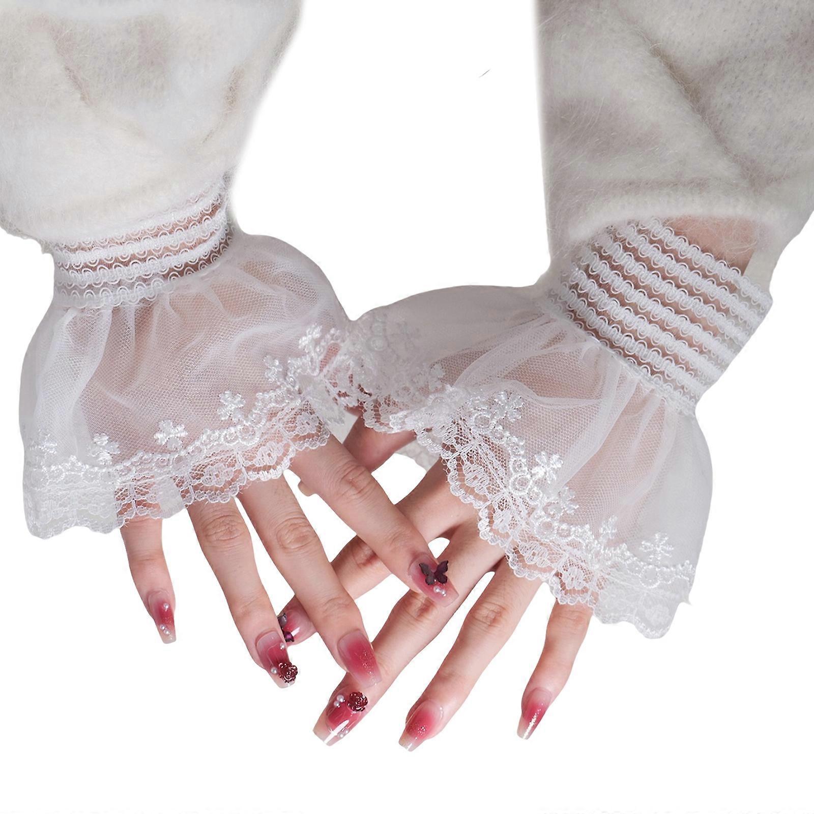 2lots Versatile Arm Sleeves for Women Lace Embroidered Double Layer Fashion Accessory Various Outfits White