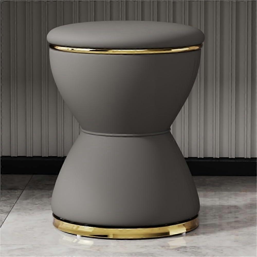 Vanity Stool 360° Swivel PU Leather Makeup Chair Round Ottoman for Bedroom Bathroom Living Room Gray