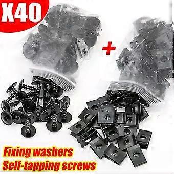 10/100pcs Self-Tapping Screws U-shaped Clips Car Motorcycle Anti-Rust Black Coating Auto Modification Spacer Kit