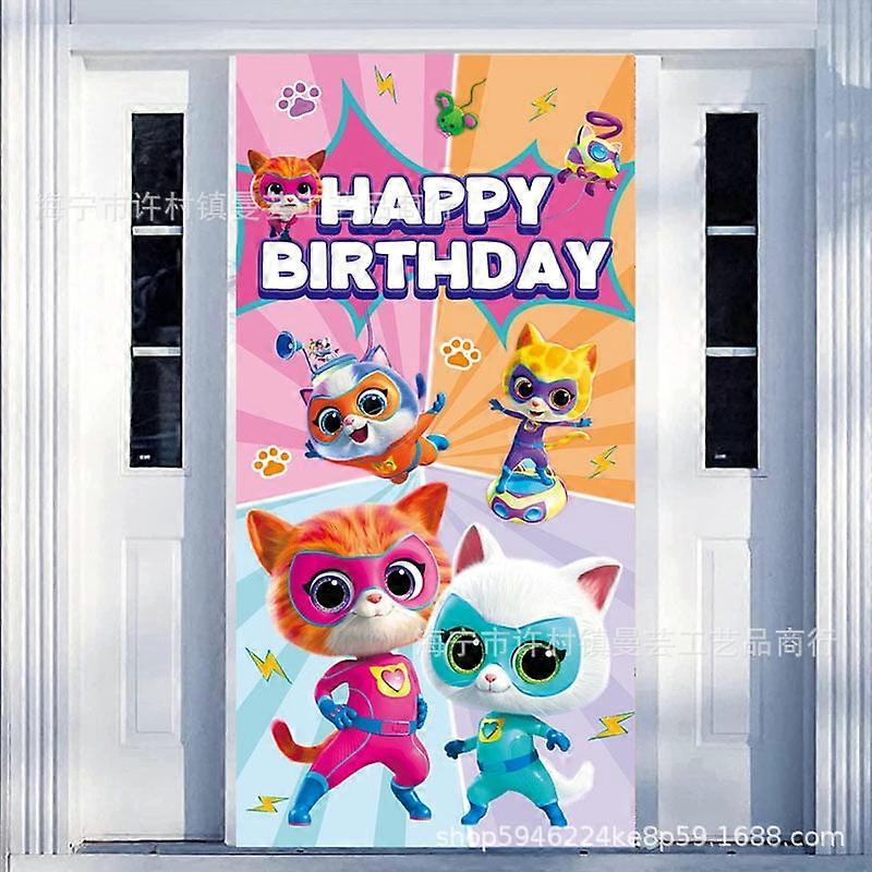 Super Cat Team Door Curtain Door Banner Cartoon Cute Cat Party Decoration Supplies Party Decorative Background Cloth