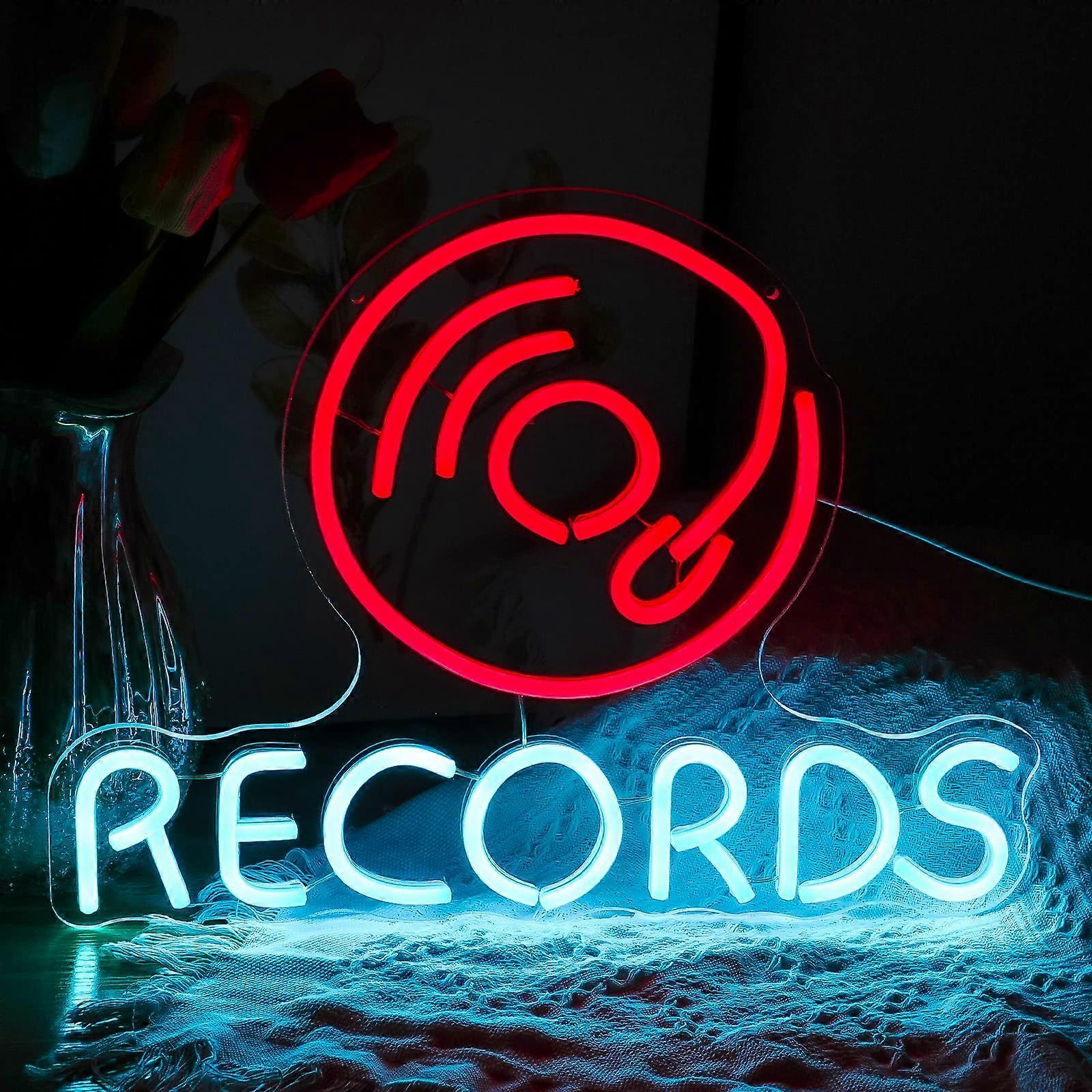 Vinyl Records Neon Sign for Wall Decor, LED Music Light Aesthetic Grunge Room Art, Red Blue 16.5x12.6 Inch
