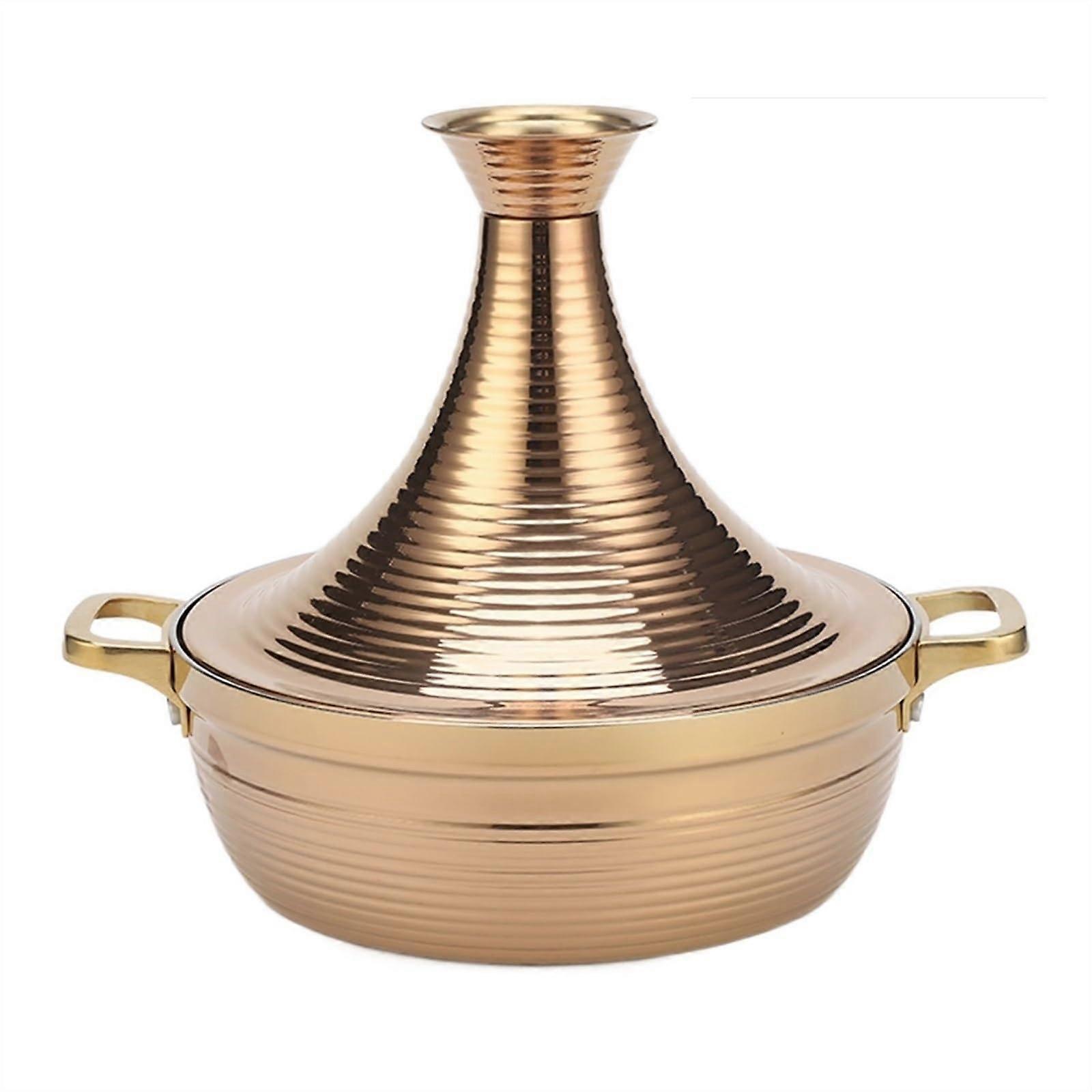 Tagine Pot Cooking Pan with ThreeLayer Steel Tapered Lid for Induction, Gold 28cm