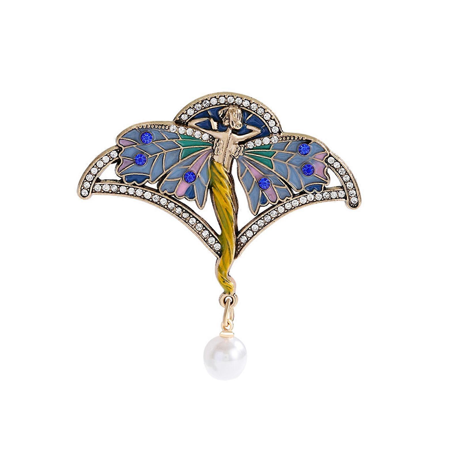 Stylish Angel Wing Brooch Pin Enamel Butterfly Pearls Rhinestones Accent Women Chest Jewelry Gift Multicolor