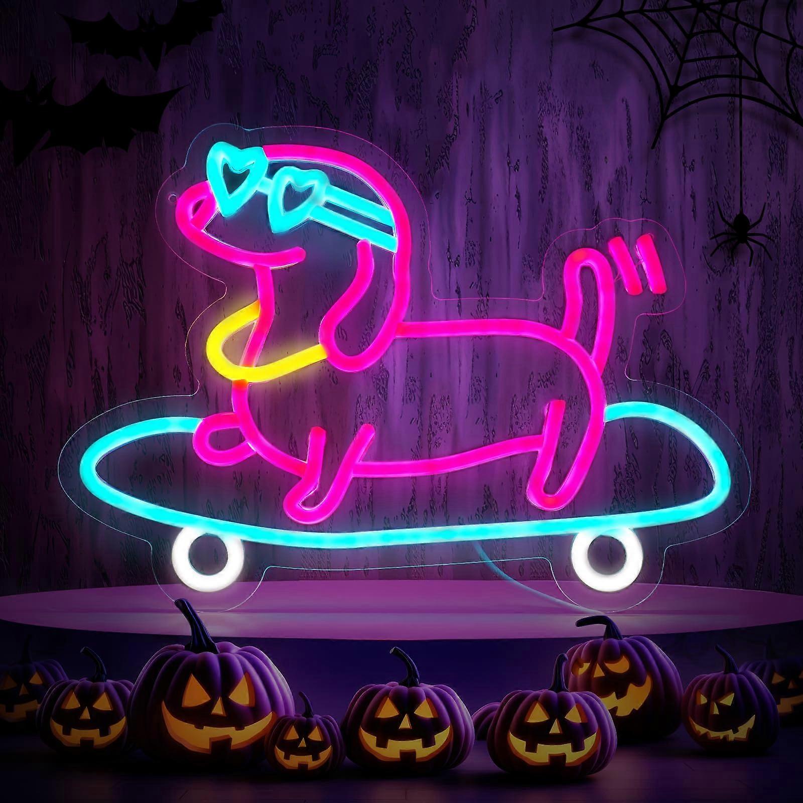 LED Neon Sign Skateboarding Halloween Dog Light for Bedroom Kids Room Pet USB Powered