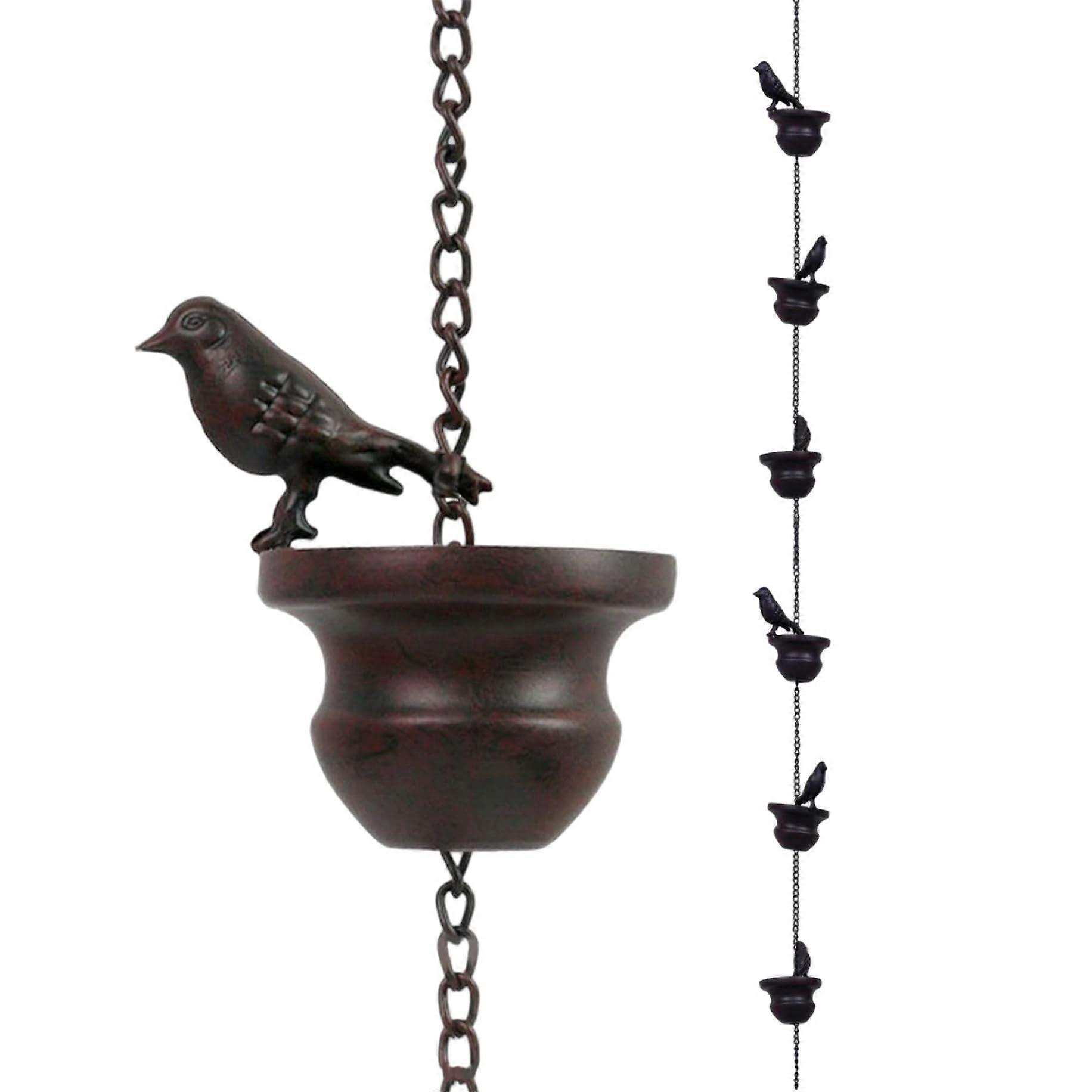 Rain Chain for Gutters with 31.5 Inch Metal Cups and Bird Design Outdoor Water Diverter