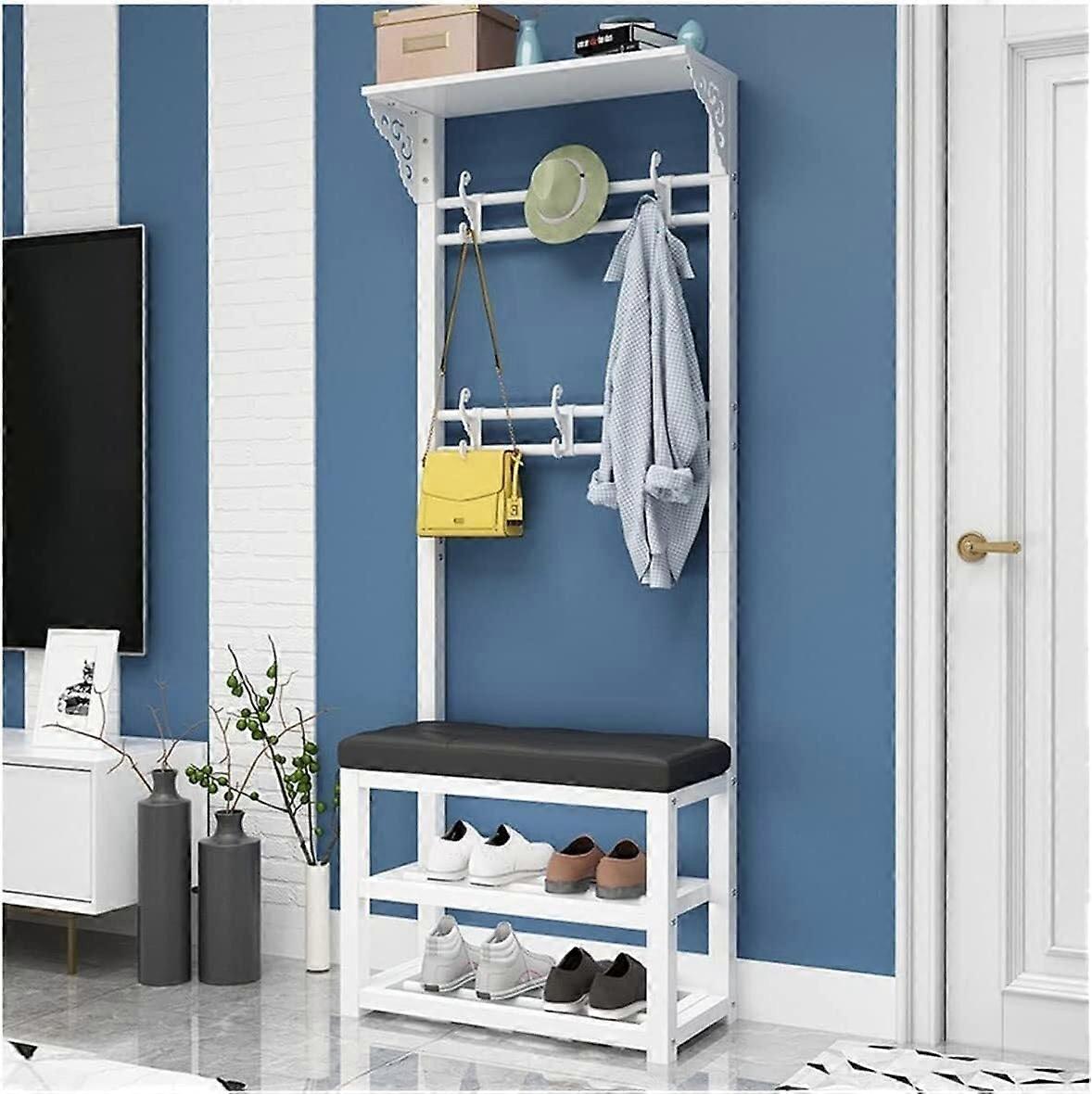 Coat Rack with Storage Bench and Cushion Seat, 2Tier Shoe Cabinet for Entryway, White Black PU, 60cm