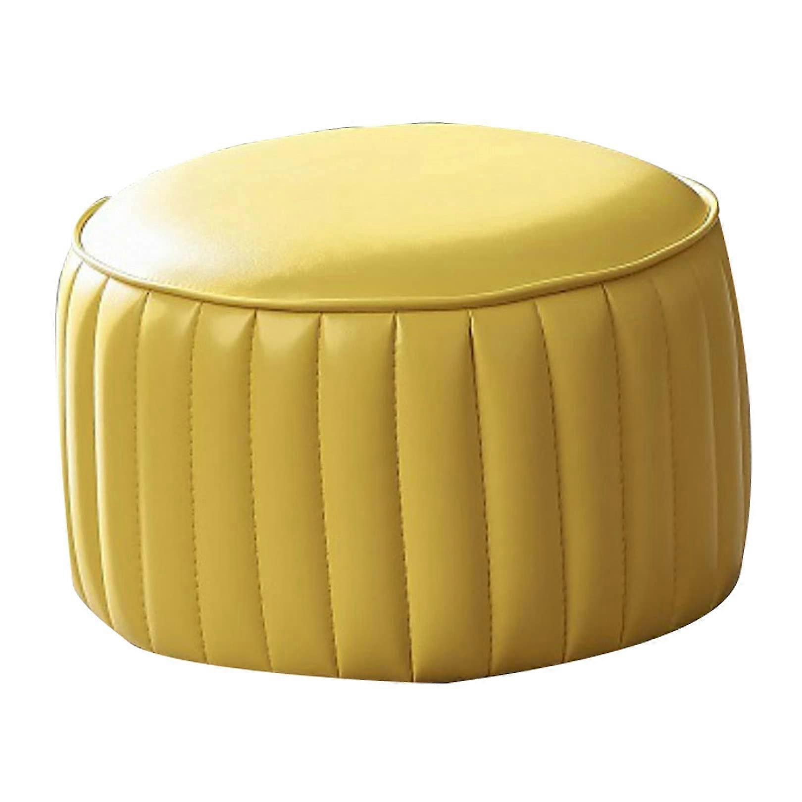 PU Leather Footstool Pouffe with Cushion for Living Room, Office, Sofa, Yellow, 36x40cm