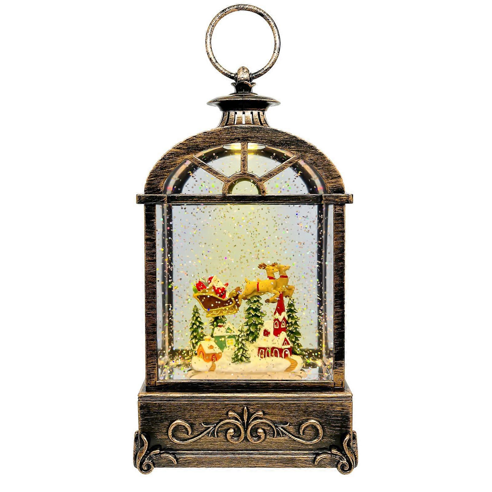 Lighted Water Snow Globe Lantern Key benefits Creates an instant holiday focal point: vintage windowstyle globe frames a detailed scene of a reindeer guiding Santa across a starry sky while vibrant LEDs and swirling glitter simulate snowfall for a cozy seasonal atmosphere. Easy, hands operation: three simple modes let you choose light with music, off, or lightonly with an automatic timer so you get consistent ambiance without daily fuss. Flexible placement and power: use the included USBtoDC cable for costeffective continuous operation or 3 AA batteries to place the lantern anywhere — table, shelf, or mantel — without needing an outlet. Durable, displayoptimized construction: robust plastic housing and a wide viewing window enhance the visual field and protect the internal scene and glitter motion. Features and function Exclusive vintage window design provides an expansive visual field to showcase the detailed Santaandreindeer scene and maximize enjoyment of the swirling glitter. Three operating modes: Light + music: LEDs illuminate the scene while a rotating playlist of eight classic Christmas tunes plays (includes 'Jingle Bells' and 'We Wish You a Merry Christmas'). Off. Light only with timer: LEDs and glitter motion run on a 6hour smart timer (music is disabled during timer mode). Smart timer behavior: when set, the lantern runs for six hours (light and glitter), then automatically powers down for 18 hours and repeats the same cycle daily, providing consistent, worry holiday ambiance. Power options: included USBtoDC cable for plugin use, or battery operation with 3 AA batteries for cordless placement. Practical details Material: durable plastic housing designed to protect the internal scene and provide an unobstructed viewing area. Performance: simulated snowfall via swirling glitter and bright LEDs create visual motion and festive lighting; music mode cycles through eight classic holiday songs to complement the visual display. Controls: straightforward mode selection and builtin timer make operation simple for all ages. Use scenarios Living room centerpiece: place on a mantel or coffee table to add movement, light, and music to holiday gatherings. Nightly ambiance without manual control: set the 6hour timer to match your evening routine so the lantern turns on and off automatically every day. Portable seasonal decor: run on 3 AA batteries to use as a decorative accent on shelves, entryway tables, or bedside stands where outlets are not available. What makes it stand out The wide, vintage window design and robust plastic construction combine durability with an expanded viewing area so the glitter motion and detailed scene are clearly visible from multiple angles. A true plugorplay option with the included USBtoDC cable plus battery operation gives you placement freedom without sacrificing consistent performance. The smart 6hour timer provides daily automation while conserving battery life by disabling music during timed operation. What you get Lighted Water Snow Globe Lantern with vintage window scene. Included USBtoDC cable for plugin operation. Threemode operation (light + music, off, lightonly timer) and a 6hour daily smart timer cycle. Easy to use, visually engaging, and designed for flexible placement, this lantern delivers a dependable, decorative holiday display for home or office.