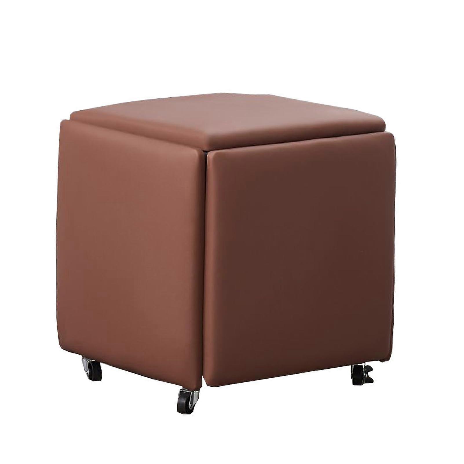 Faux Leather Ottoman Foot Stool with Metal Legs, Stackable Cube Chair for Living Room, Brown 46x48cm