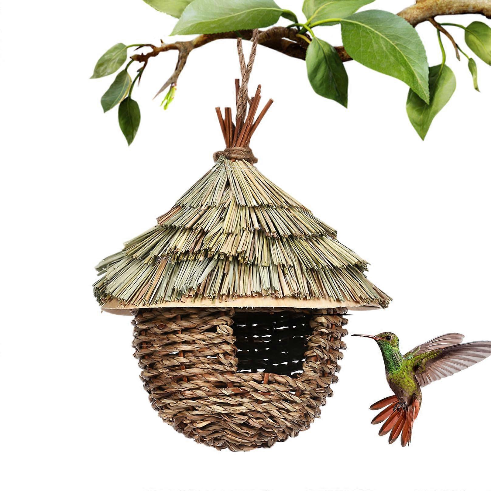 Hummingbird Nest House 6.7x8.7 Inch Woven Straw Hanging Bird Shelter for Outdoor Garden Decor