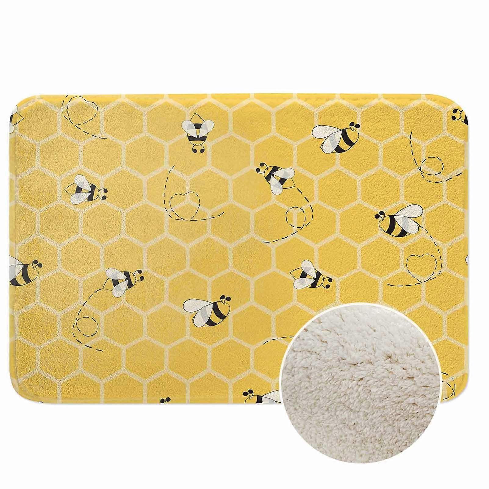 Bee Bath Rug with Honeycomb Pattern Yellow Flannel NonSlip Washable Mat for Bathroom Kitchen Laundry 15.7x23.6 Inch