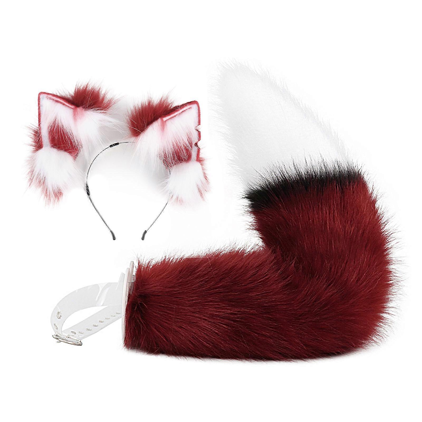 Animal Cosplays Costumes Faux Furs Cats Foxes Wolf Fuzzy Tail Ears Headbands for Halloween Party Costume Accessorise Multicolor
